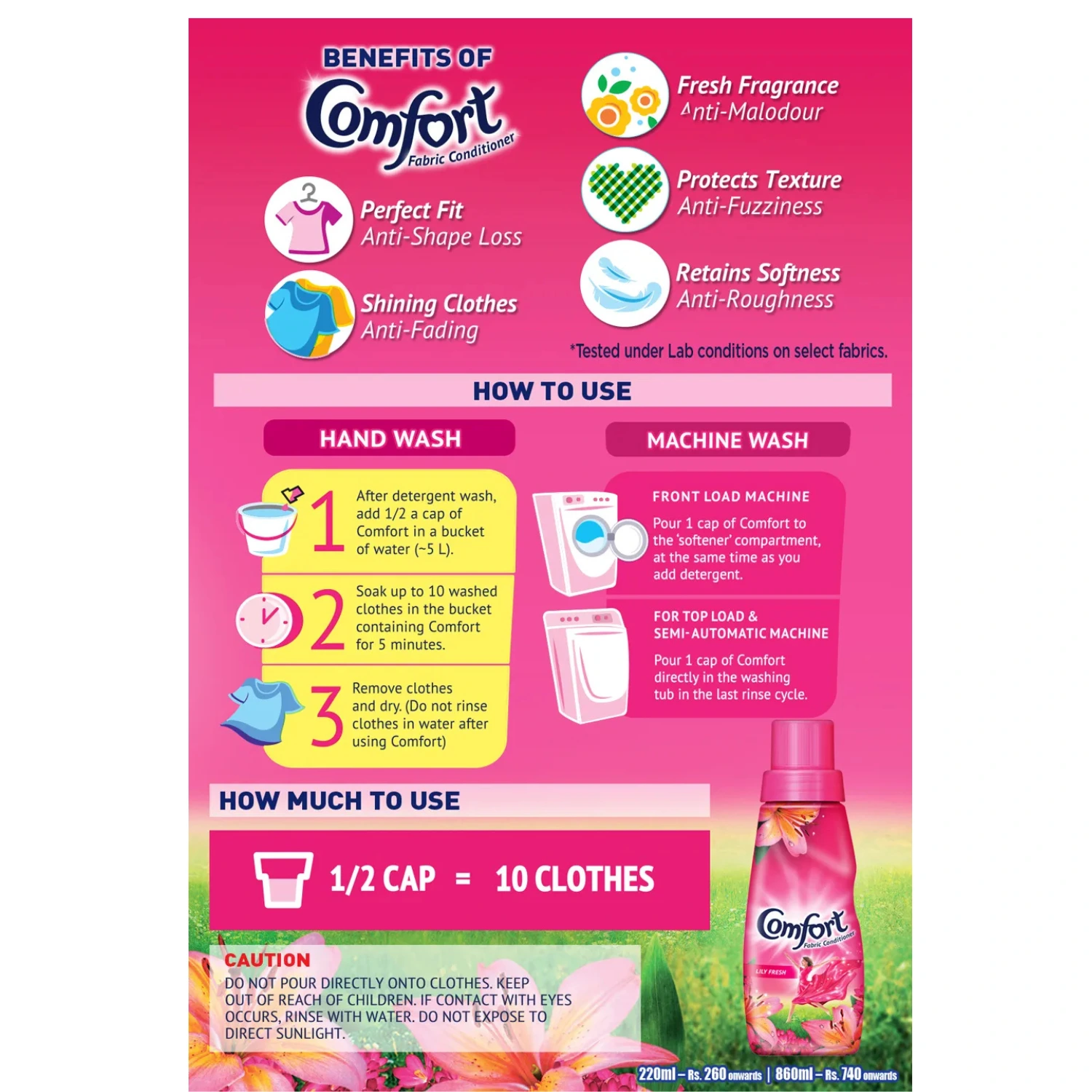 Price range: $25.00 through $320.00Comfort (Lily Fresh Fabric Conditioner) 90ml 210ml 860ml